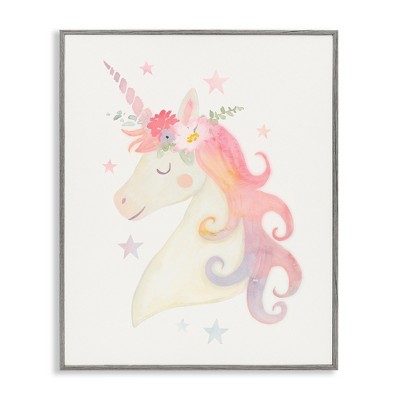 Stupell Industries Charming Unicorn Smiling Flower Crown Stars Design Framed Giclee Art, Gray, 11" x 14"