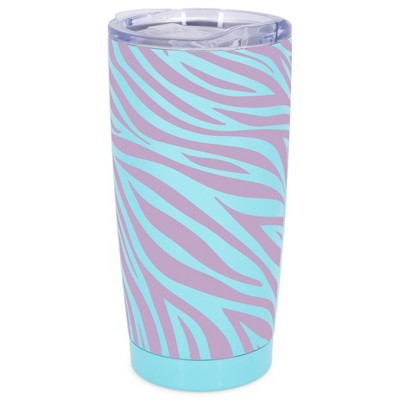 Elanze Designs 20 oz Stainless Steel On the Go Insulated Travel Tumbler With Push Top Lid, Lavender Zebra Print Sky Blue