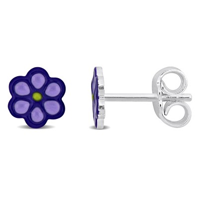 EVERLY JEWELRY | Sterling Silver Pink Enamel Flower Stud Earrings