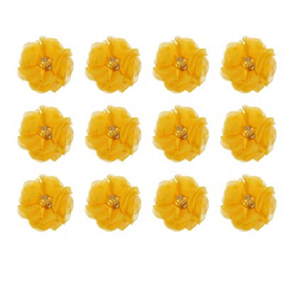 Unique Bargains Artificial Rhinestone Chiffon Flower Heads 12 Pcs Yellow