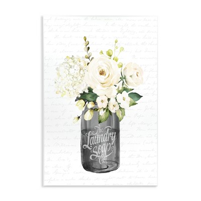 Stupell Industries White Blooms Flower Bouquet Classic Jar Script Canvas Art, 24" x 30"