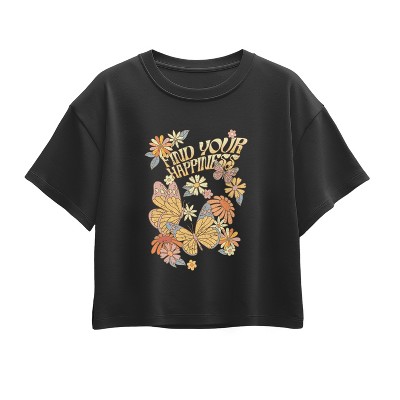 Girls' - Instant Message - Find Your Happiness Flowers Short Sleeve Boxy Graphic T-Shirt