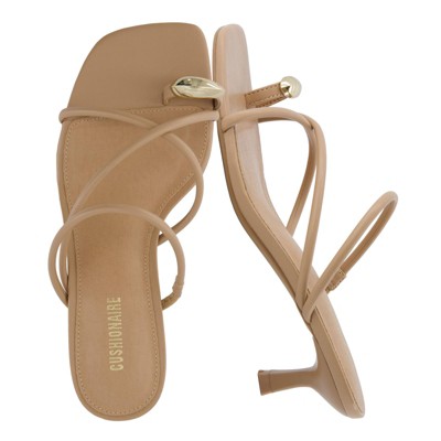 CUSHIONAIRE Maui Strappy Womens Sandals with Kitten Heels – Vegan Leather Slip On Dress Sandals for Women, Square Toe Wedding Shoes