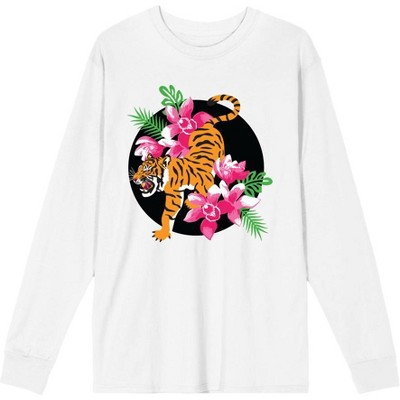 Natural World Tiger & Flowers Adult Crew Neck Long Sleeve Tee