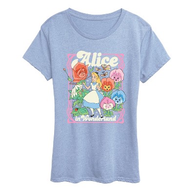 Women's - Alice in Wonderland - Alice and Flowers Oversized Graphic T-Shirt