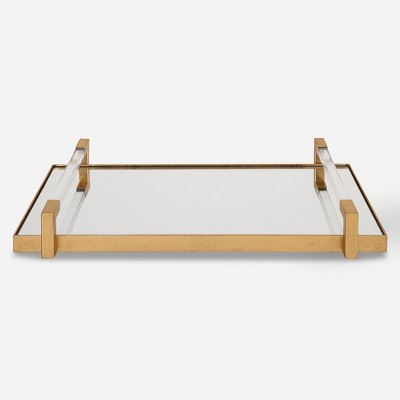 Classic Touch High Gloss Decorative Tray with Gold Ball Deign and Handles