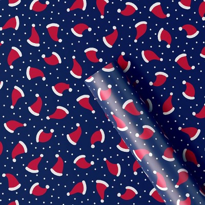 30" 50 sq ft Christmas Roll Wrap Santa Hats on Navy - Wondershop™