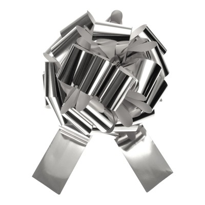 Unique Bargains Wedding Christmas Bright Metallic Gift Wrapping Large Pull Bows Ribbon 1 Pc Silver 24 inch