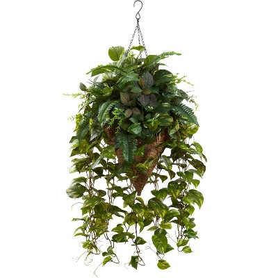 Nearly Natural Vining Mixed Greens with Cone Hanging Basket