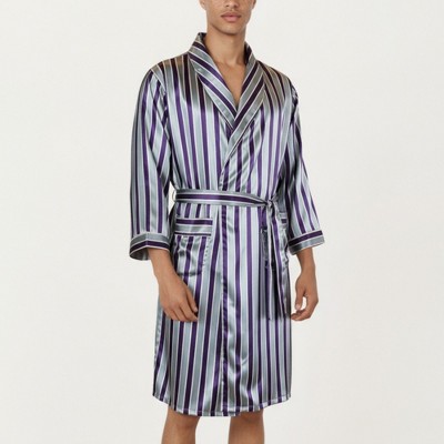 Anna-Kaci Lounge Men's Paisley Print Satin Robe with Contrast Shawl Collar and Waist Tie