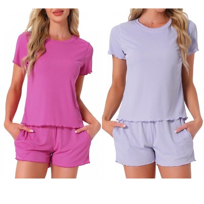 INSPIRE CHIC Women's 4 Pcs Ribbed Knit Soft Short-Sleeve Top & Shorts Ruffled Lounge Pajama Set with Pocket