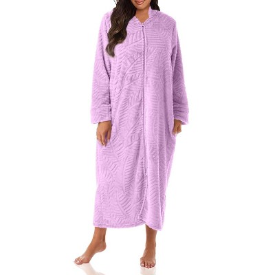 Ekouaer Fleece Robes for Women Hooded Plush Zipper Front Long Bathrobe Warm House Robe Sleepwear with Pockets