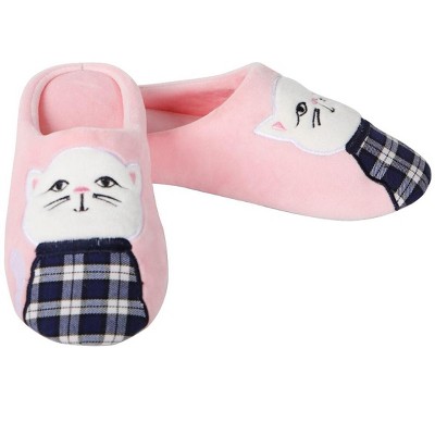 Memoi Women's Plaid Cat Plush Hard Bottom Slippers Pink S