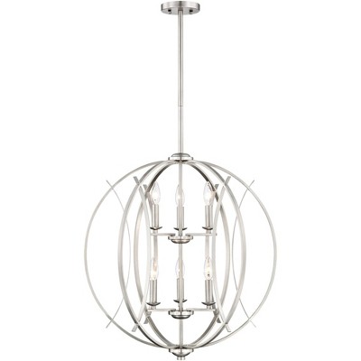 Possini Euro Design Spherical Brushed Nickel Large Chandelier 24" Wide Modern 6-Light Fixture for Dining Room House Foyer Kitchen Island Entryway Home