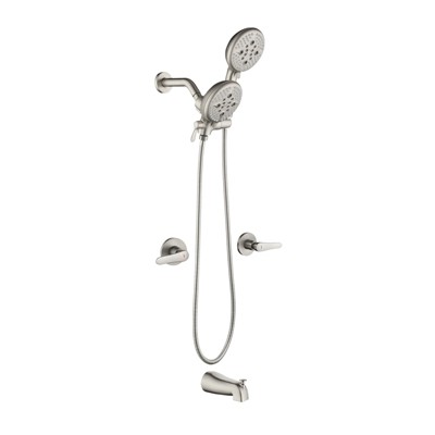 Cobbe Wall Mounted Showerhead Kit Double Handle with 5-Function ABS Dual Sprayer and 59-Inch Hose Brushed Nickel