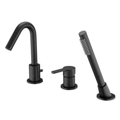 Sumerain Matte Black Waterfall Tub Faucet Deck Mount 3 Hole Widespread Bathtub Faucet with Valve