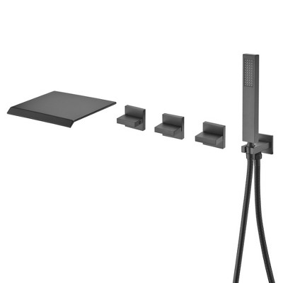 Sumerain Wall Mount Bathtub Faucet with Hand Shower, Matte Black Waterfall Tub Faucet, High Flow