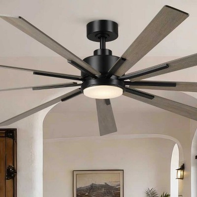 Parrot Uncle 72"Industrial Black LED Windmill Ceiling Fan with Light and Remote HVLS Fan