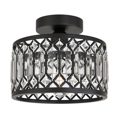 DORESshop 1-Light Semi-Flush Mount Ceiling Light with Matte Black Triangular Crystal Accents, Drum Shade, E26 Socket, Non-Integrated Bulb