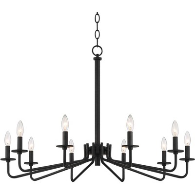 Franklin Iron Works Manfred Black Metal Chandelier 36" Wide Modern Industrial 10-Light Fixture for Dining Room House Foyer Kitchen Island Entryway