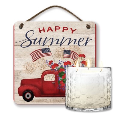 Courtside Market 13.5 oz, 3 Wick Citronella Candle & Truck Patriotic Flower & Flags 10x10 Hanging Artboard Set