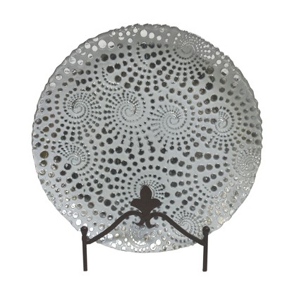 Essential Decor & Beyond 13" White Glass Charger with Gold Swirling Spirals Modern Design Set of 4