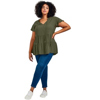 Jessica London Stretch Knit Flutter Sleeve Tunic