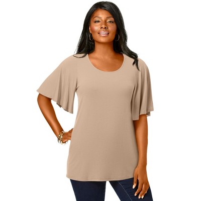 Jessica London Stretch Knit Flutter Sleeve Tunic