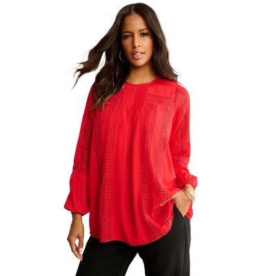 Roaman's Lace-Trim Blouson-Sleeve Top