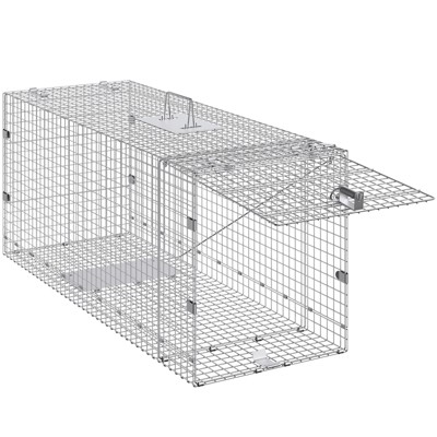 VEVOR Humane Live Animal Trap, Dimensions 50" x 20" x 26", Crafted from Galvanized Iron, Collapsible Design with Carrying Handle