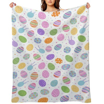 Easter Eggs Throw Blanket, Colorful Easter Decorations for Boys and Girls, Happy Easter Flannel Throw Blanket,Soft Warm Easter Blanket 60x80 inches