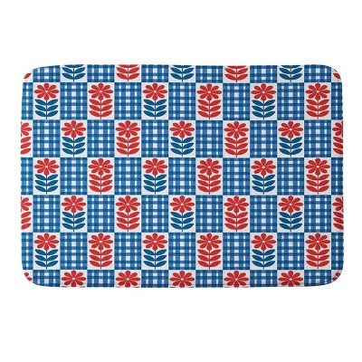 Deny Designs Jenean Morrison Gingham Floral Memory Foam Bath Mat Blue