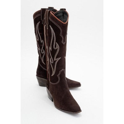 MAAYA Brown Handcrafted Collared Suede Boot