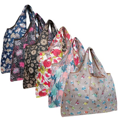 Wrapables Large Foldable Tote Nylon Reusable Grocery Bags, 6 Pack