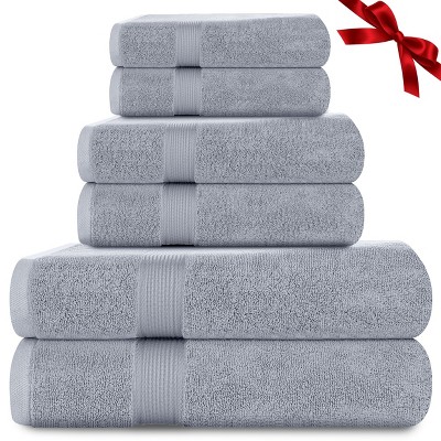 Lux Decor 6 Piece Towel Set Luxury 100% Cotton Soft Absorbent Bath Towels Zero Twist Solid Bath Towel Pack