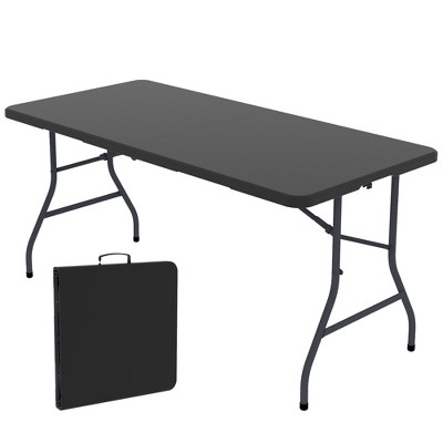 SUGIFT 4ft Portable Plastic Folding Tables for Home Garden Office Indoor Outdoor, Black