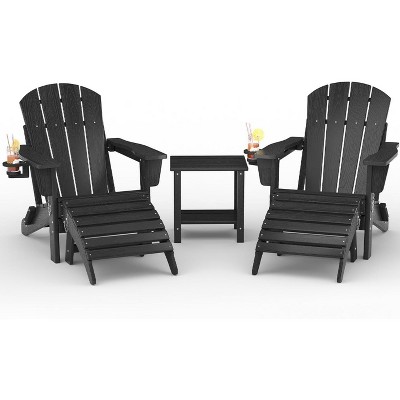 Foldable Adirondack Chair with Ottoman,Portable HDPE Outdoor Patio Chair with Cup Holder,All Weather Resistent Wooden Textured for Patio,Deck,Garden