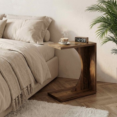 Round End Table, Wooden Couch Side Table with Octagonal Base