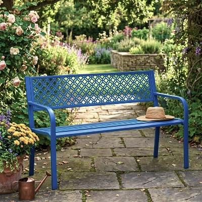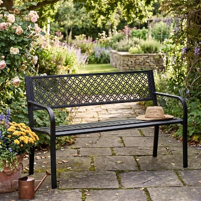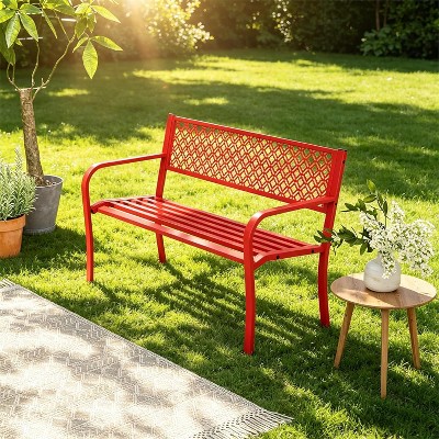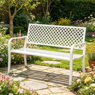 50in 2-Person Outdoor Bench, 790lb Heavy Duty Steel Patio Bench with Geometric Backrest for Garden Patio Porch Entryway Courtyard Park