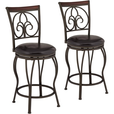 55 Downing Street Brown Swivel Bar Stools 24 7/8" High Set of 2 Traditional with Backrest Footrest Kitchen Counter Height Island
