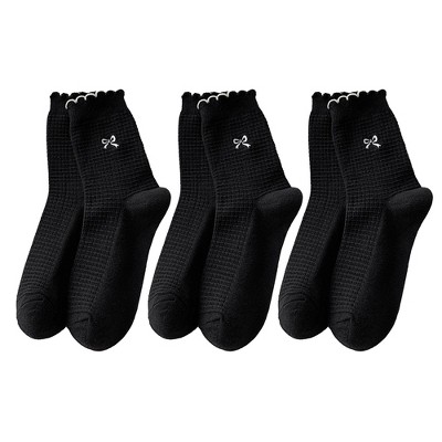 Anna-Kaci Women's 3-Pair Ribbed Crew Socks with Satin Bow Tie Cuffs Soft Stretch Everyday Socks - Gray+Beige+White