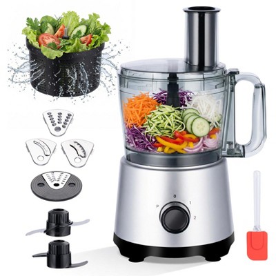 Food Processor 10-Cup with 6 Blades, Salad Spinner Basket & Silicone Brush, 600W 3-Speed Vegetable Chopper, Dishwasher Safe, Silver