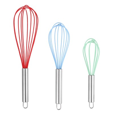 Unique Bargains Stainless Steel Silicone Non-Stick Coated Heat-Resistant Whisk 3 Pcs