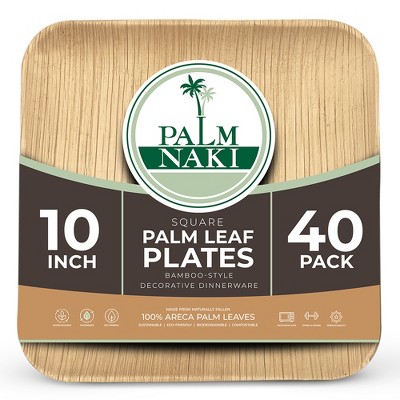 Palm Naki Small Square Palm Leaf Plates (40 Count) - Eco-Friendly, Compostable
