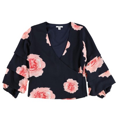 French Connection Womens Frill Sleeve Floral Pullover Blouse