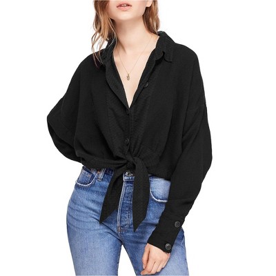 Rachel Roy Womens V-Neck Crop Knit Blouse