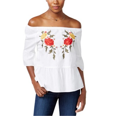 1.STATE Womens Lace Trim Off the Shoulder Blouse