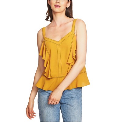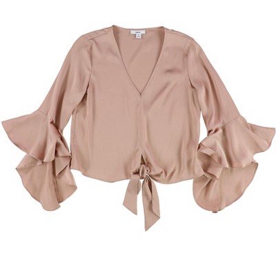 1.STATE Womens Solid Ruffled Blouse