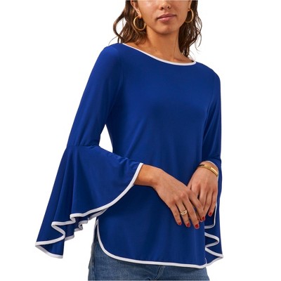 Karen Kane Womens Striped Bell Sleeve Pullover Blouse