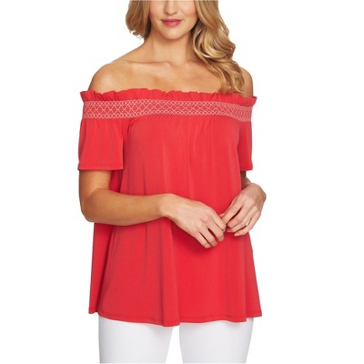CeCe Womens Smocked Off the Shoulder Blouse